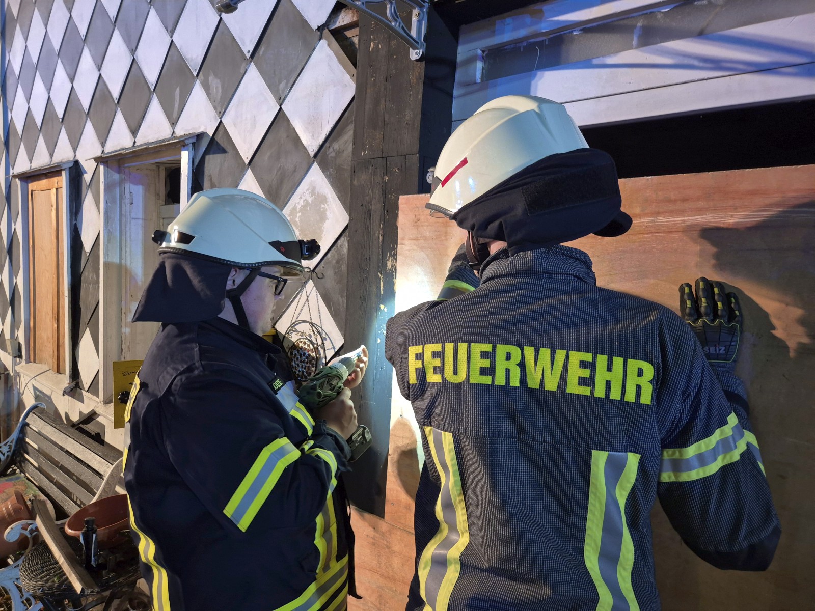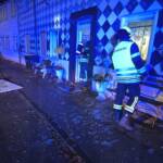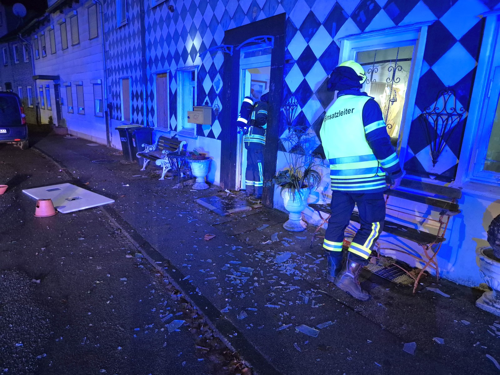 Kurz nach dem Knallereignis erfolgte dann auch die Alarmierung der Feuerwehr. Die Einsatzkräfte kontrollierten das Gebäude und Umfeld und beleuchteten den Bereich zur weiteren Erkundung. Ein Feuer konnte nicht festgestellt werden, jedoch bestätigte sich die gemeldete Rauchentwicklung. Vor dem betroffenen Haus lagen zahlreiche Glasscherben auf Gehweg und Straße, die auf eine mögliche Explosion hindeuten. Vermutlich wurde ein größerer Böller gezündet – die Polizei hat dazu weitere Ermittlungen aufgenommen.